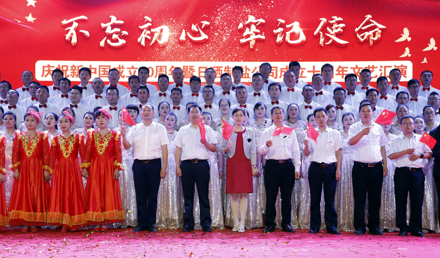 日曬制鹽公司舉辦以“不忘初心、牢記使命”為主題的慶祝新中國成立七十周年、日曬制鹽公司成立十周年文藝演出。憶初心,回顧日曬制鹽公司成立十年來的發展歷程;擔使命,展示日曬制鹽公司成立十年來發展成就。表彰先進、宣傳典型,展示廣大員工創新創業的奮斗精神和發展信心。