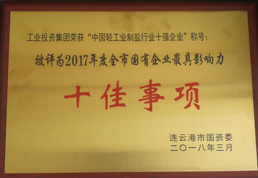 會(huì)上集團(tuán)榮獲“2017年度市屬?lài)?guó)有企業(yè)績(jī)效考評(píng)”一等獎(jiǎng);同時(shí)集團(tuán)榮獲“中國(guó)輕工業(yè)制鹽行業(yè)十強(qiáng)企業(yè)”稱(chēng)號(hào)成功入選2017年度全市國(guó)有企業(yè)最具影響力十佳事項(xiàng)之一。集團(tuán)下屬杜鐘氨綸公司、資產(chǎn)管理公司被評(píng)為“2017年度全市國(guó)資系統(tǒng)先進(jìn)集體”;胡傳祥被評(píng)為“全市國(guó)資系統(tǒng)2017年度優(yōu)秀管理者”;伏彩兵、王建、安樹(shù)林、王以知、羅孝平、趙華兵、喬以成、馮如點(diǎn)獲“全市國(guó)資系統(tǒng)2017年度先進(jìn)工作者”稱(chēng)號(hào)。