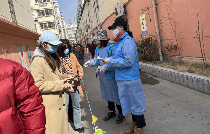 除了在崗員工,還有退休黨員秦英、孫芳等,在疫情發(fā)生前,他們是公司內(nèi)退黨員,在疫情爆發(fā)以后,他們是無所畏懼的抗疫戰(zhàn)士。隨著連云港開始第一輪全員核酸檢測,工作人員和志愿者都嚴(yán)重短缺,每天確診病例激增的數(shù)據(jù)都令人觸目驚心。當(dāng)看到招募志愿者的公告時(shí),秦英熱血沸騰。“黨和人民需要我,我的家鄉(xiāng)需要我!”主動(dòng)聯(lián)系海州區(qū)幸福路街道西大嶺社區(qū),在咨詢志愿者報(bào)名的同時(shí),鄭重地并向社區(qū)遞交了一份疫情防控“請戰(zhàn)書”。