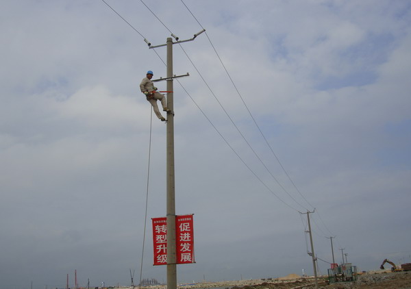 8月27日,該所接到連云新城建設(shè)指揮部通知,要求在施工道路沿線全部架設(shè)臨時路燈,并在8月31日完成,以加快新城工程建設(shè)進度。這需要在短短三天內(nèi)安裝60盞路燈、架設(shè)3000米照明線路與部分電桿。該所領(lǐng)導班子既感受到新城建設(shè)指揮部領(lǐng)導的信任,又深感任務(wù)的艱巨。面對人員少、工程急、施工地形復雜等困難,該所安排人員抓緊制定方案,準備材料,并積極組織人力,除留下變電所和電費收繳值班人員外,其余人員全體出動。一場與時間賽跑、與困難抗爭的會戰(zhàn)在連云新城建設(shè)工地上拉開了序幕。