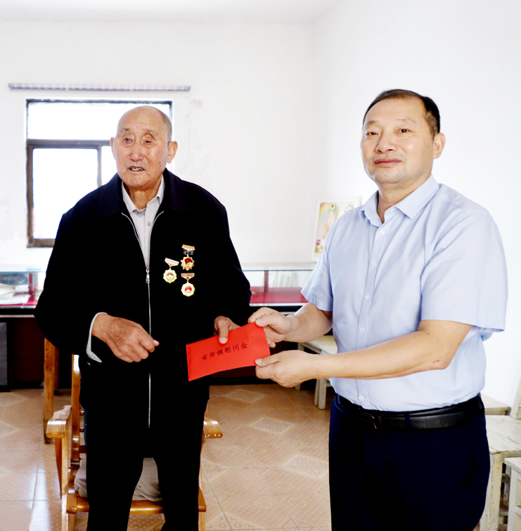 在走訪慰問過程中,公司黨委為省勞模送去慰問品和慰問金,并詳細詢問畢勞模身體和生活情況,并對他為灌西發展作出的貢獻表示感謝和敬佩。90高齡的畢老行動不便,李董事長與其緊緊握住雙手,親切交談,細心詢問,了解他家中生活情況,希望他保重身體,安享晚年。(張明建)