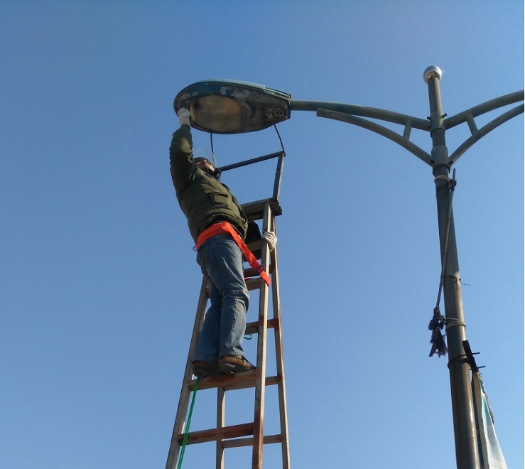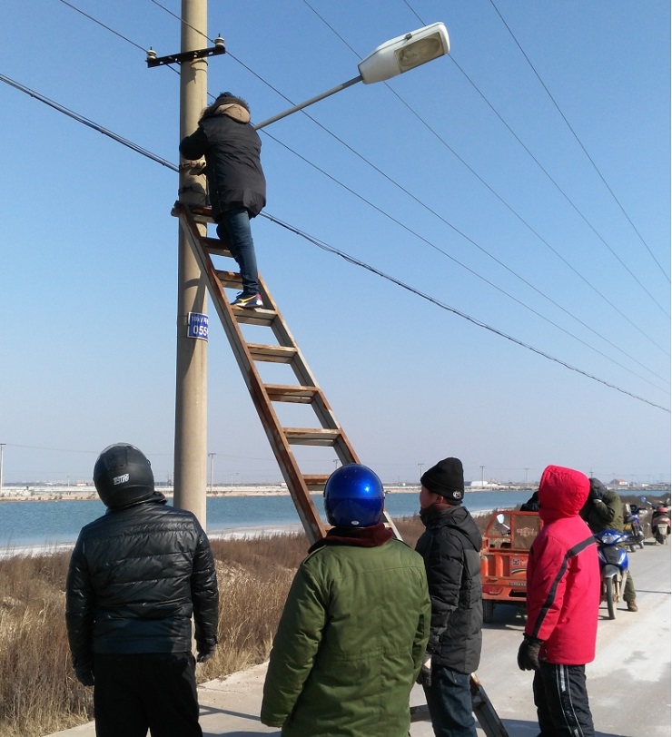 為增添節日氣氛,亮化場區,機械設備服務中心接到場區及日曬鹽道路路燈維修任務后,班子成員高度重視,認真組織,積極籌備維修配件,并結合天氣形勢,對需要修理的60盞路燈,采取分段實施的辦法,于1月25日開始,他們本著安全第一的原則,搶時間爭速度,對日曬鹽道路路燈展開維修工作,繼而對場區中二圩街道路燈進行維修,職工們不畏嚴寒,加班加點,到1月31日將全部路燈維修結束。(圖為修理現場)