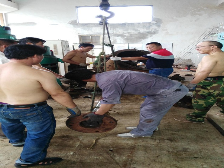 為確保各項工作能正常進行,機電服務公司合理安排時間,組織職工認真學習了“華茂”公司艱苦創業的拼搏精神、開拓進取的擔當精神、愛崗敬業的奉獻精神、協作共進的團隊精神,結合自身實際,確立了完成全年目標任務措施。做到任務分解到人。并以“華茂”精神為動力。積極組織職工,合理安排維修項目工程。連日來,機電服務公司職工能避開高溫時間,利用早上涼爽時進行維修作業,分兩班人馬:一是標準化廠墻面維修,二是六圩閘水泵修理。(圖為水泵維修現場)(胡亞東)