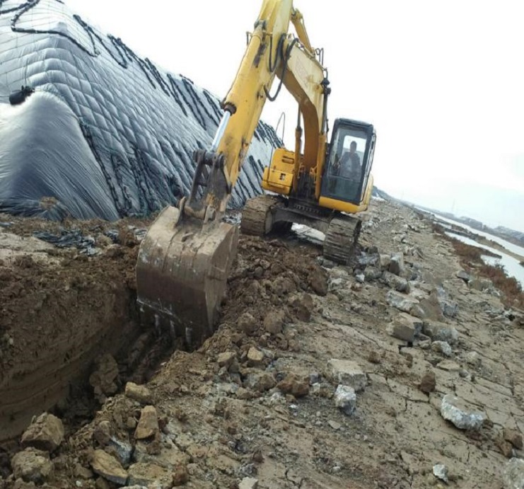 (圖為施工現場挖掘機整理路基)