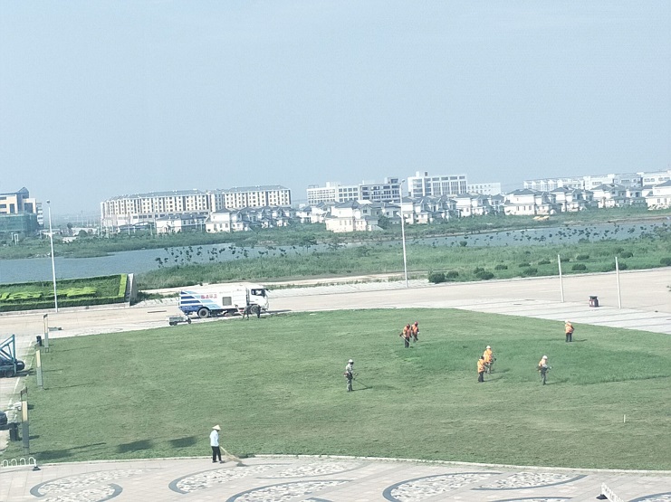 近日來,隨著高溫天氣的延續(xù),也正值樹木生長茂盛的時候,新區(qū)綠化帶內(nèi)的雜草叢生直接影響了美觀。為此,南翼公司于7月18--20日組織綠化人員對雜草進行清理。10余名綠化工人背著拴草機,頂著烈日、冒著酷暑在新區(qū)綠化帶內(nèi)清除雜草。雖然轉眼間汗水濕透了他們的衣服,但是在她們堅持了幾小時的工作,順利完成了此項任務,綠化帶又整齊如一,并受到有關領導的高度贊揚。(王薇)