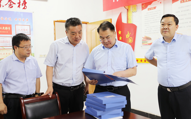 在大新農(nóng)場黨支部黨員活動室,戴書記與支部負責同志攀談交流,通過看現(xiàn)場、查臺賬、詢問題,詳細了解了大新支部黨員強基項、創(chuàng)優(yōu)項“1+1積分制管理”等工作情況。他指出,要貫徹新時代黨的建設(shè)總要求和新時代黨的組織路線,深化黨支部標準化規(guī)范化建設(shè),扎實開展黨史學習教育和“兩在兩同”建新功行動,落實好“三會一課”等基本制度,進一步建強黨在基層的戰(zhàn)斗堡壘,引導(dǎo)廣大黨員傳承偉大建黨精神,做新思想的堅定信仰者和忠實實踐者。