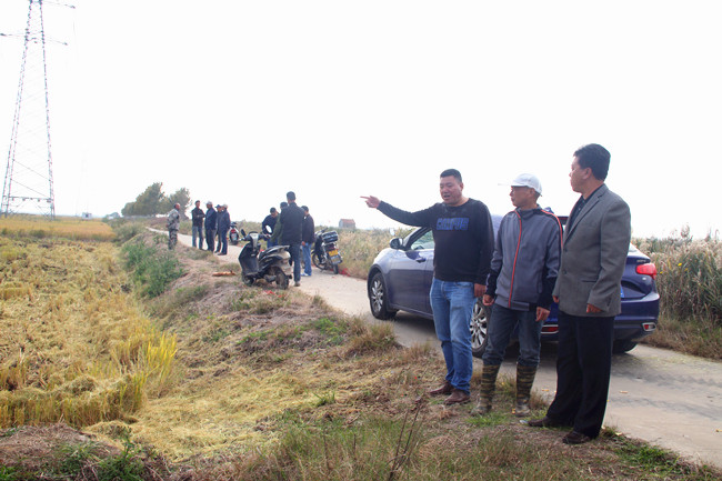 10月25日,天氣晴好。四臺收割機伴隨著喜慶的爆竹聲陸續開進稻田,拉開了大新農場萬畝稻田開鐮序幕。黨委委員、副總經理周緒祥在現場查看指揮。