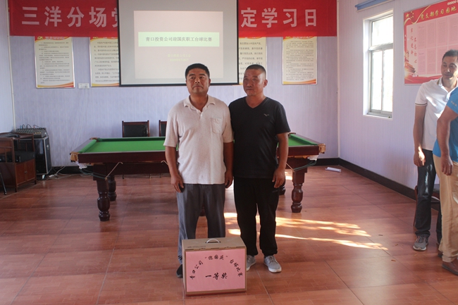 ? ? 26日的臺球比賽賽場設在三洋分場院內,賽場內高懸大紅燈籠及條幅,為活動增添了喜慶的氣氛。