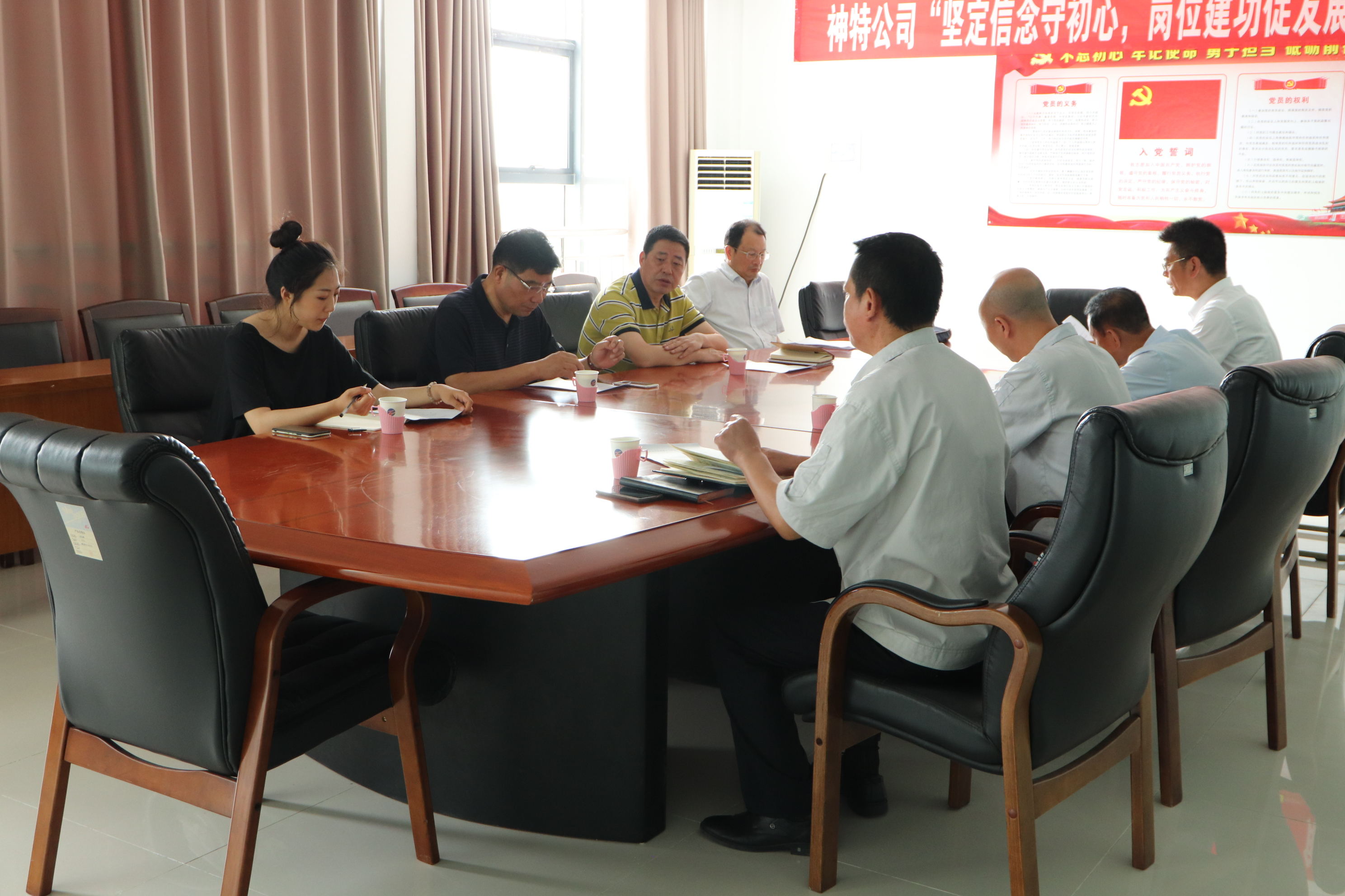 7月12日上午,集團公司黨群工作部部長江舜軍率調研組一行,到我公司調研上半年黨建重點工作落實情況,公司黨支部書記鄒德兵、總經理韓立新、黨支部副書記袁忠陪同調研。