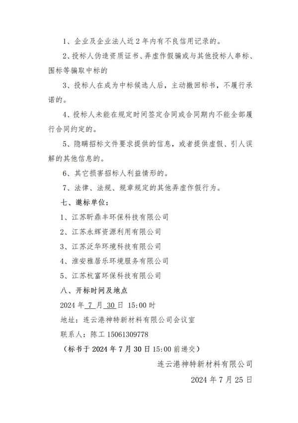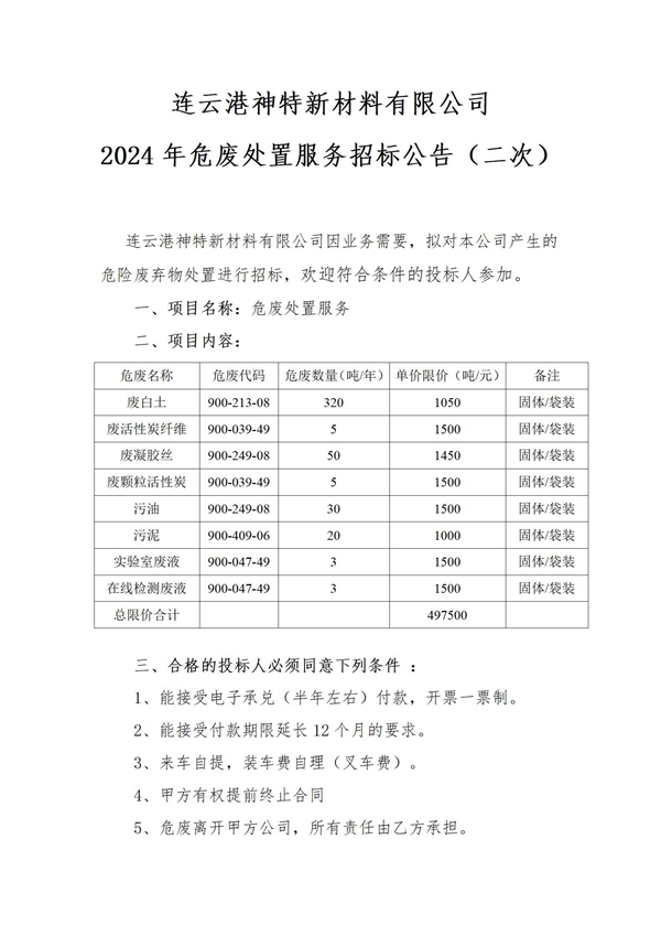 神特公司2024年危廢處置服務(wù)招標公告(二次)