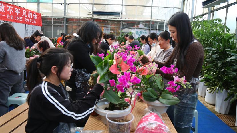? ? 情暖三月,巾幗芳菲相競妍。在“三八”國際婦女節來臨之際,為展現公司女干靚麗風采,豐富文化生活,3月6日下午,臺北(華茂)公司工會組織50余名女職工代表在市振興花卉城開展“國際婦女節快樂 致敬不平凡的你”慶婦女節插花活動,展現新時代女性風采。