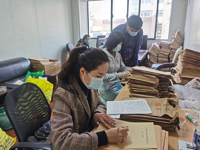 在檔案整理現場,大家通力配合,有的整理檔案、有的輸入電腦、有的仔細核對,加班加點做好退休人員基本信息和檔案整理、登記造冊等工作,有條不紊、熱火朝天。工作人員層層壓實責任,細化任務分工,編制移交清單,對各個時期的人事檔案材料及時進行梳理、鑒別、整理、裝訂,確保內容真實準確、材料齊全完整。此次涉及移交檔案1580卷,已經完成1300余卷,其余部分將于近期陸續完成。