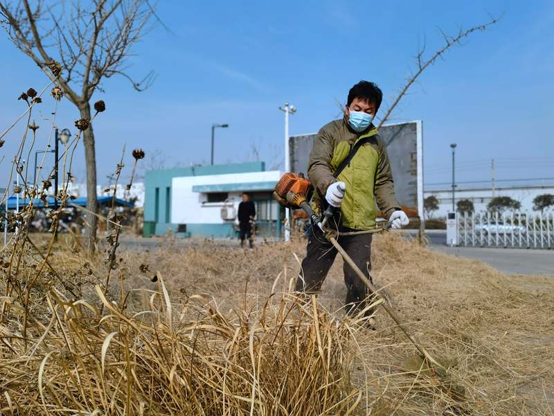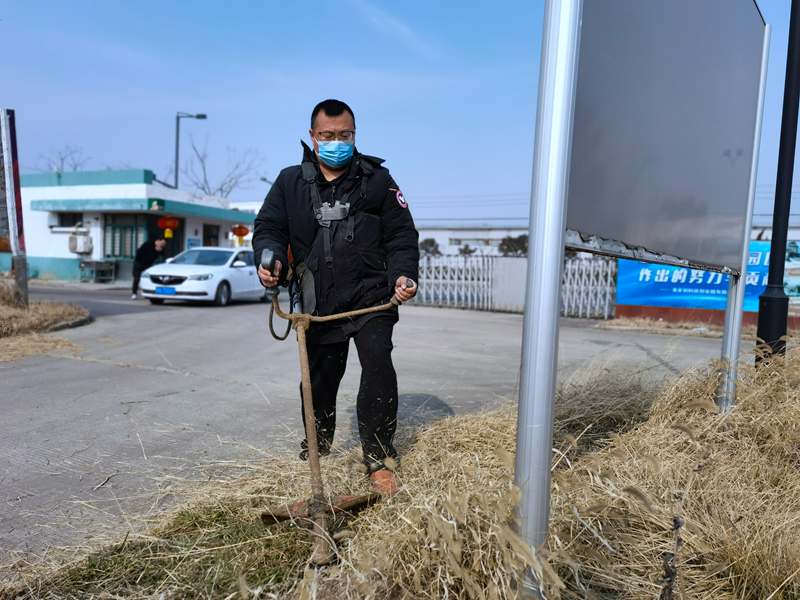 經(jīng)驗老道的“除草匠人”朱春華一馬當(dāng)先,一人成軍,小小雜草在揮舞的打草機下“灰飛煙滅”