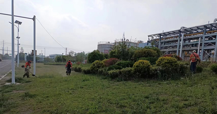 板橋工業(yè)園區(qū)祥和路、云港路、瑞和路等路段,隨處都可見到綠化工人忙碌的身影,他們不畏辛苦,搶時(shí)間、抓進(jìn)度,對綠籬、綠化苗木進(jìn)行修剪造型。園區(qū)路邊,機(jī)器轟鳴,除草工作有條不紊。綠化工人們頭戴防護(hù)帽,架著割草機(jī),動(dòng)作嫻熟,割草效率極高。三人一排、兩人一對,齊頭并進(jìn),戰(zhàn)線推進(jìn)過的地方?jīng)芪挤置鳎粝乱黄R的坡面,賞析悅目。經(jīng)過多日持續(xù)奮戰(zhàn),已經(jīng)完成綠地雜草清理15萬平方米,綠籬修剪3萬平方米任務(wù)。為高標(biāo)準(zhǔn)完成二季度綠化管養(yǎng)目標(biāo)奠定基礎(chǔ)。(劉永)